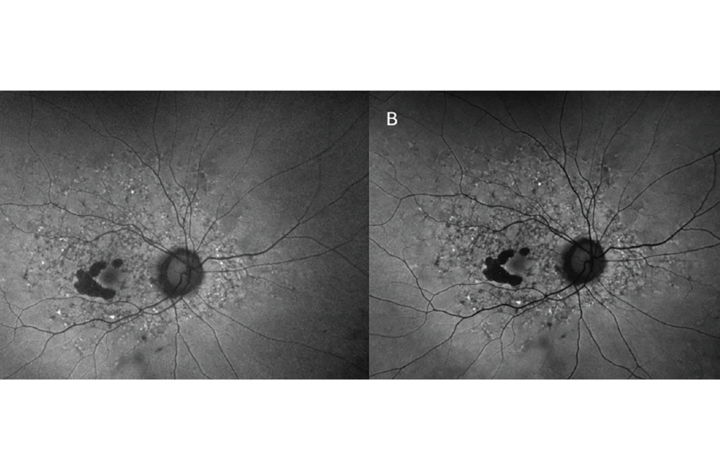 Este formato de imagen es una modalidad poco conocida y poco utilizada, con una alta sensibilidad para mostrar cambios estructurales en la retina externa, el epitelio pigmentario retroperitoneal (EPR) y la coroides. Piccolino et al. fueron los primeros en observar el patrón autofluorescente del fondo de ojo al iluminarlo con luz infrarroja mientras investigaban la pseudofluorescencia en la angiografía con verde de indocianina. 12 En aquel momento, sospecharon que el sutil patrón autofluorescente representaba la distribución de melanina, sangre y lipofuscina en el fondo de ojo. 12