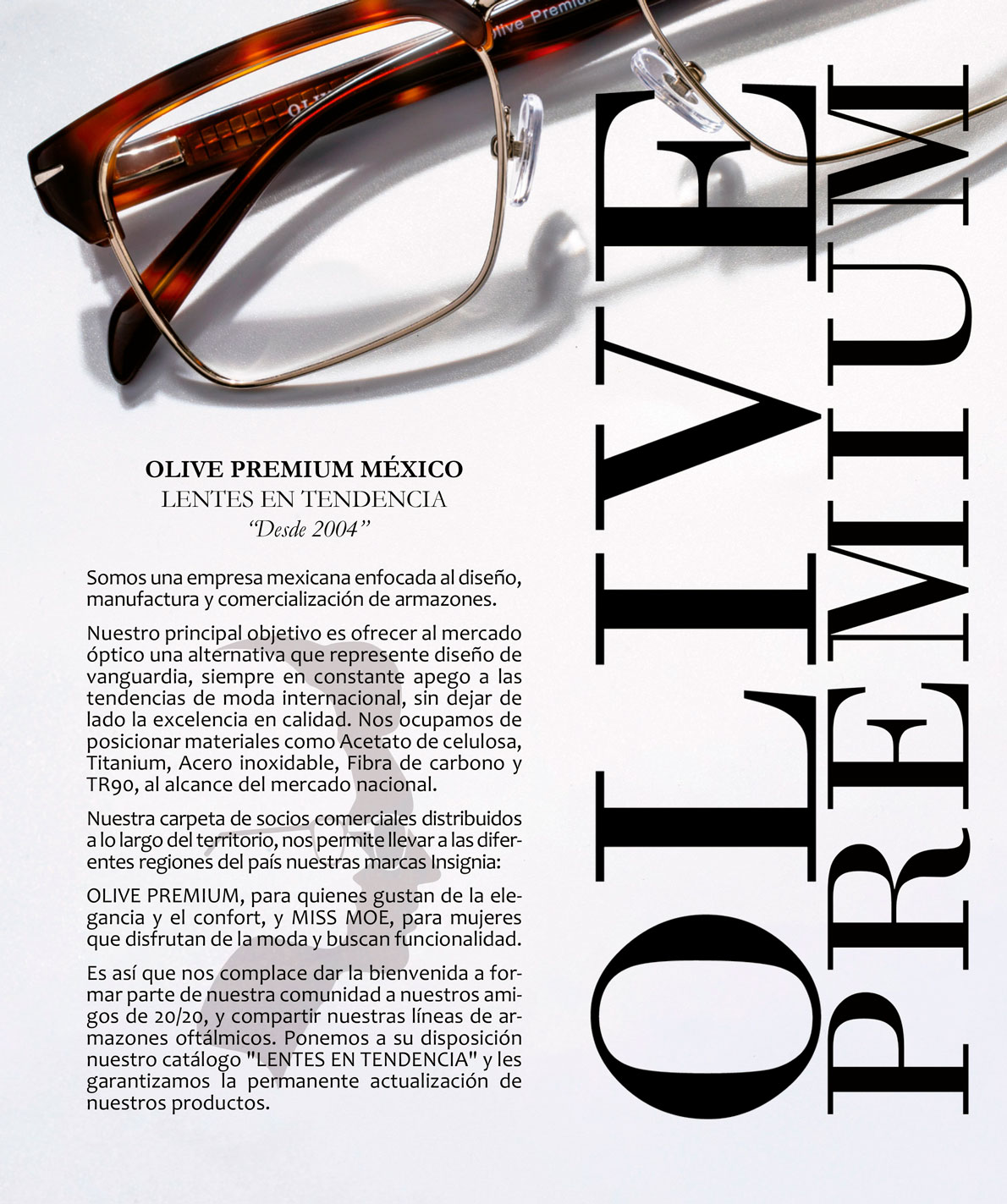 OLIVE PREMIUM MÉXICO LENTES EN TENDENCIA abril 13, 2026 por sergio.plotnicoff@gmail.com con No hay comentarios MX181Publireportajes Entrada anterior Cómo ser un profesional de la visión “protagonista” en el control de progresión de la miopía: Siguiente entrada PARA QUIENES HACEN DE SU MIRADA SU SELLO PERSONAL.