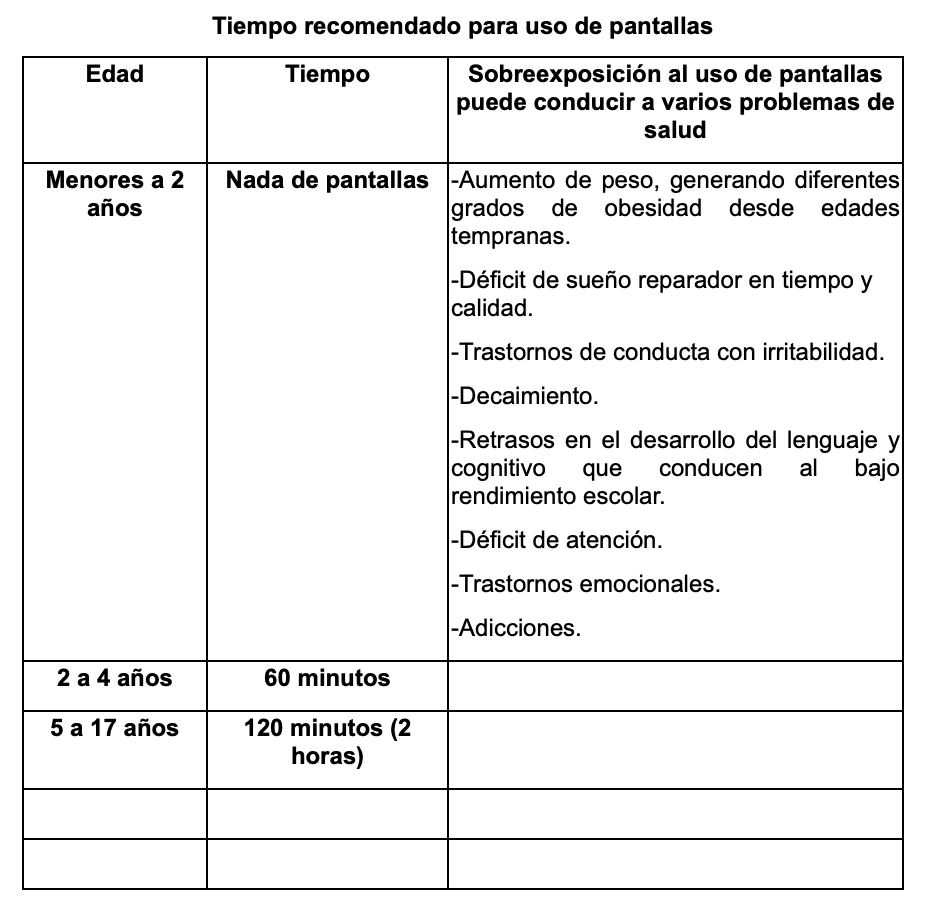8.- OMS recomienda evitar exponer a niños menores de dos años de vida a pantallas. (2015, enero 16). Gov.Py. https://www.mspbs.gov.py/portal/27094/oms-recomienda-evitar-exponer-a-nintildeos-menores-de-dos-antildeos-de-vida-a-pantallas.html